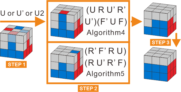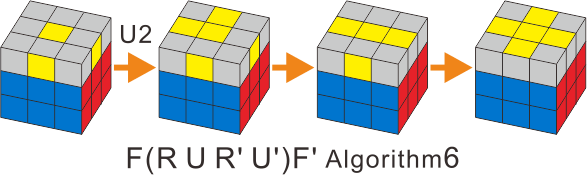 2)There are only four cases in this step, which execute the Algorithm 6 once will you transform to the next case, until the yellow cross is done.