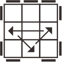 1)The diagram is a vertical view. The arrows represent the moving direction of the edge pieces, and the black bars represent the same-colored pieces.